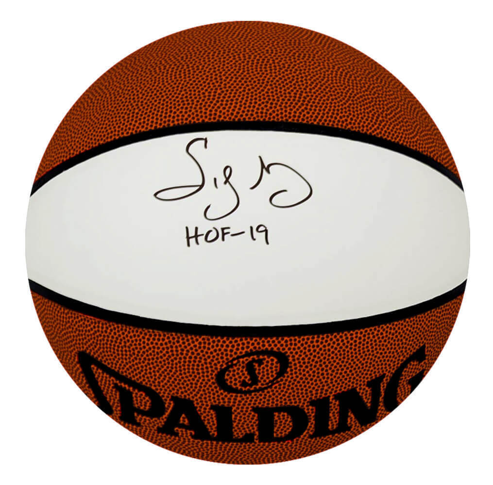 Sidney Moncrief signed Spalding white panel full size basketball with 'HOF 19' inscription. Item comes with a Schwartz Sports Memorabilia tamper-proof numbered hologram and Certificate of Authenticity which can be verified online.