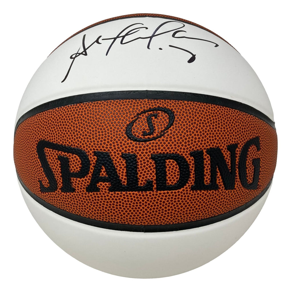 Featured is a Stephon Marbury signed Spalding NBA white panel replica basketball. This ball has been hand signed by Marbury and comes with the Beckett witnessed hologram and certificate of authenticity. This ball would make a great addition to any sports memorabilia collection! SPECIFICATIONS Autographed By: Stephon Marbury Team: New York Knicks Sport: Basketball Authentication: Beckett Grading Services