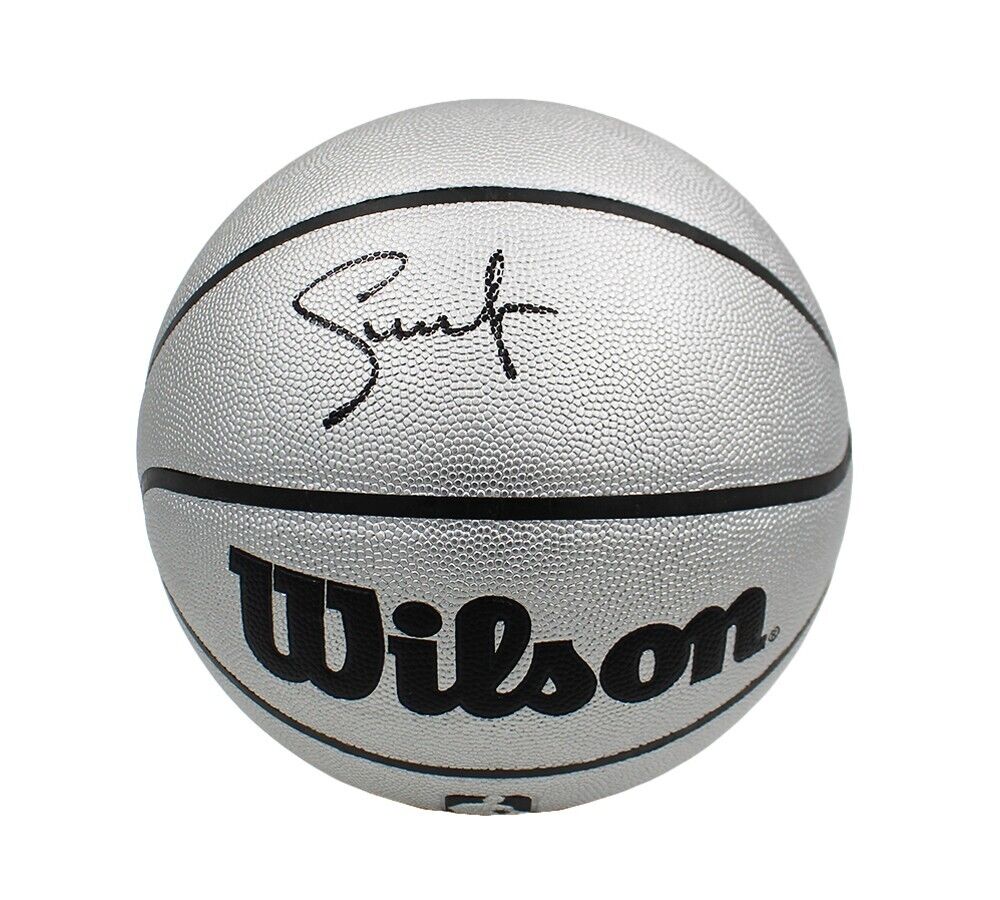 A Phoenix Suns Wilson Platinum NBA Basketball hand signed by Steve Nash. The item and signature are in excellent condition. Steve played 18 seasons in the NBA, where he was an 8x NBA All-State and a 7x All-NBA selection. AUTHENTICATION: The item is accompanied by a Beckett Serial Numbered & Databased Hologram