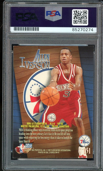 1996 Skybox Z Force #151 Allen Iverson RC On Card PSA/DNA Auto GEM MINT 10