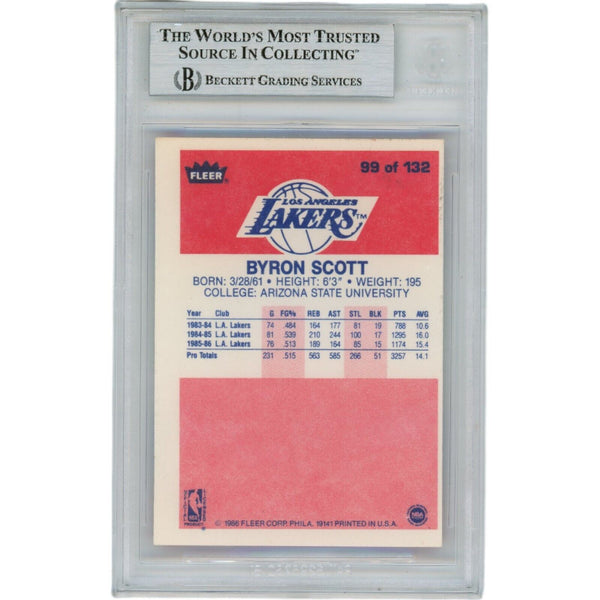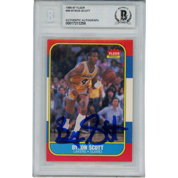 The number in the listing title is just an inventory sku for our records and is not the authentication number. This is a stock photo, unless otherwise noted. This is a Los Angeles Lakers 1986 Fleer #99 Slabbed Trading Card that was personally autographed by Byron Scott. Includes a certificate of authenticity from Beckett Authentication Services (BAS) and Denver Autographs.FREE SHIPPING within the USA on orders over $10!