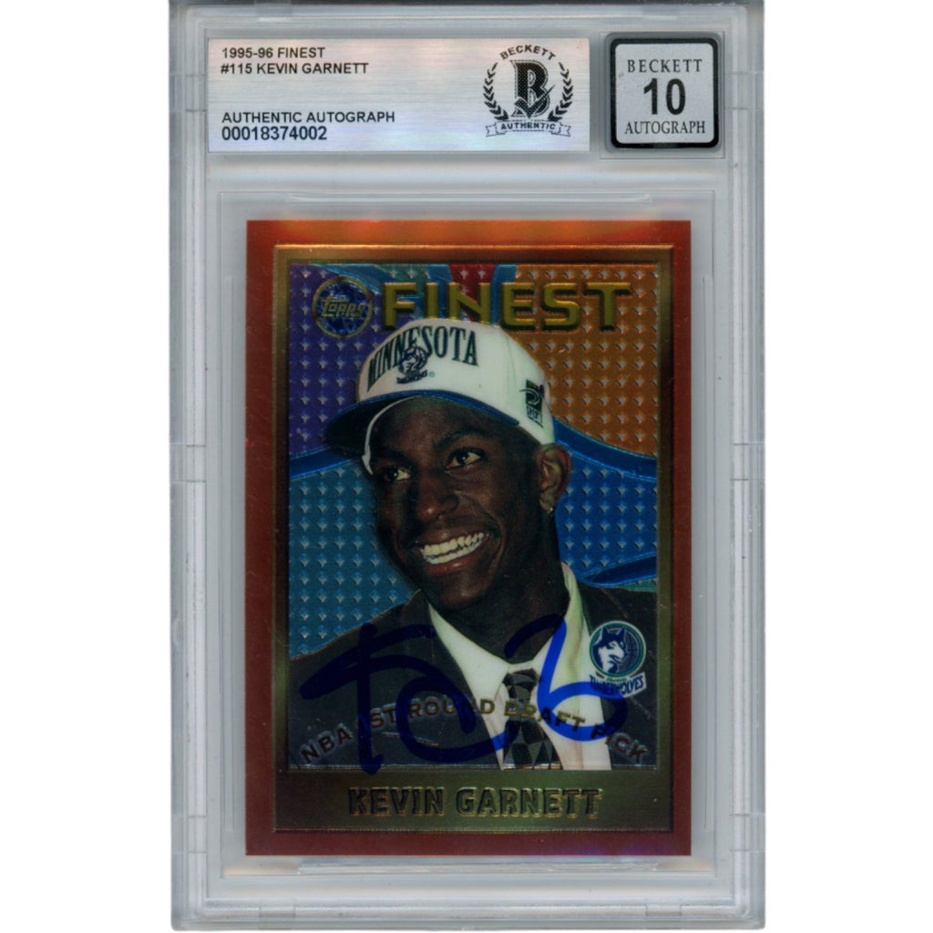 Kevin Garnett Autographed 95-96 Topps Finest #115 Trading Card Beckett 50860