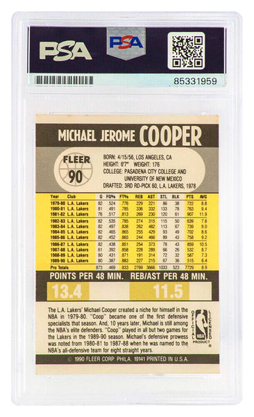 Michael Cooper signed Los Angeles Lakers 1990-91 Fleer basketball trading card #90. The card has been authenticated and encapsulated by PSA/DNA and the number can be verified online.