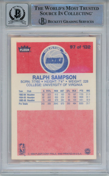 Ralph Sampson Signed 1986-87 Fleer #97 Rookie Card Beckett 10 Slab 42898 The number in the listing title is just an inventory sku for our records and is not the authentication number. This is the exact item that you will receive so please see pictures for condition. This is a trading card that was personally autographed by Ralph Sampson. This has been professionally slabbed by Beckett Authentication Services (BAS) and includes a certificate of authenticity from Denver Autographs.