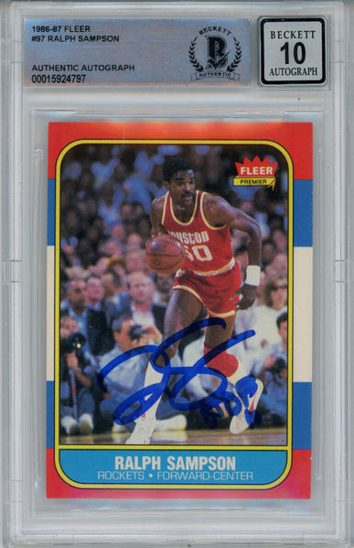 Ralph Sampson Signed 1986-87 Fleer #97 Rookie Card Beckett 10 Slab 42939 The number in the listing title is just an inventory sku for our records and is not the authentication number. This is the exact item that you will receive so please see pictures for condition. This is a trading card that was personally autographed by Ralph Sampson. This has been professionally slabbed by Beckett Authentication Services (BAS) and includes a certificate of authenticity from Denver Autographs.