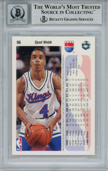 Spud Webb Autographed 1992 Upper Deck #96 Trading Card Beckett Slab 36318 The number in the listing title is just an inventory sku for our records and is not the authentication number. The item pictured is a stock photo unless otherwise noted. This is a trading card that was personally autographed by Spud Webb. This has been professionally slabbed by Beckett Authentication Services (BAS) and includes a certificate of authenticity from Denver Autographs.