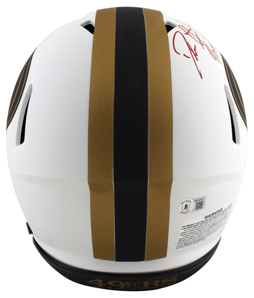This Autographed Alternate Lunar Riddell Full Size Speed Proline Helmet W/ Uv Mirrored Back Acrylic Display Case with the inscription of "Primetime" has been Personally Signed by Deion Sanders of the San Francisco 49ers. This item is 100% Authentic to include a hologram by Beckett Authentication Services. This item will come with an affixed Beckett Authentication Services (BAS) authentication sticker, which includes a scannable QR code to verify authenticity. Please note that Beckett no longer provides serial-numbered COA cards, and the attached BAS sticker will serve as the complete authentication for this item. This is a BAS Witnessed Protection Program item which means a Beckett Authentication Service representative was present when this item was being signed. We conducted an autograph signing with Deion Sanders where multiples of the same item were signed. While the photographs are representative of this item, the size, placement and strength of the signature may vary. Each item is hand signed, therefore, each autograph is unique. This item can be verified through BAS Witnessed.