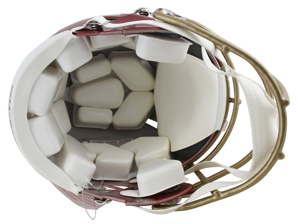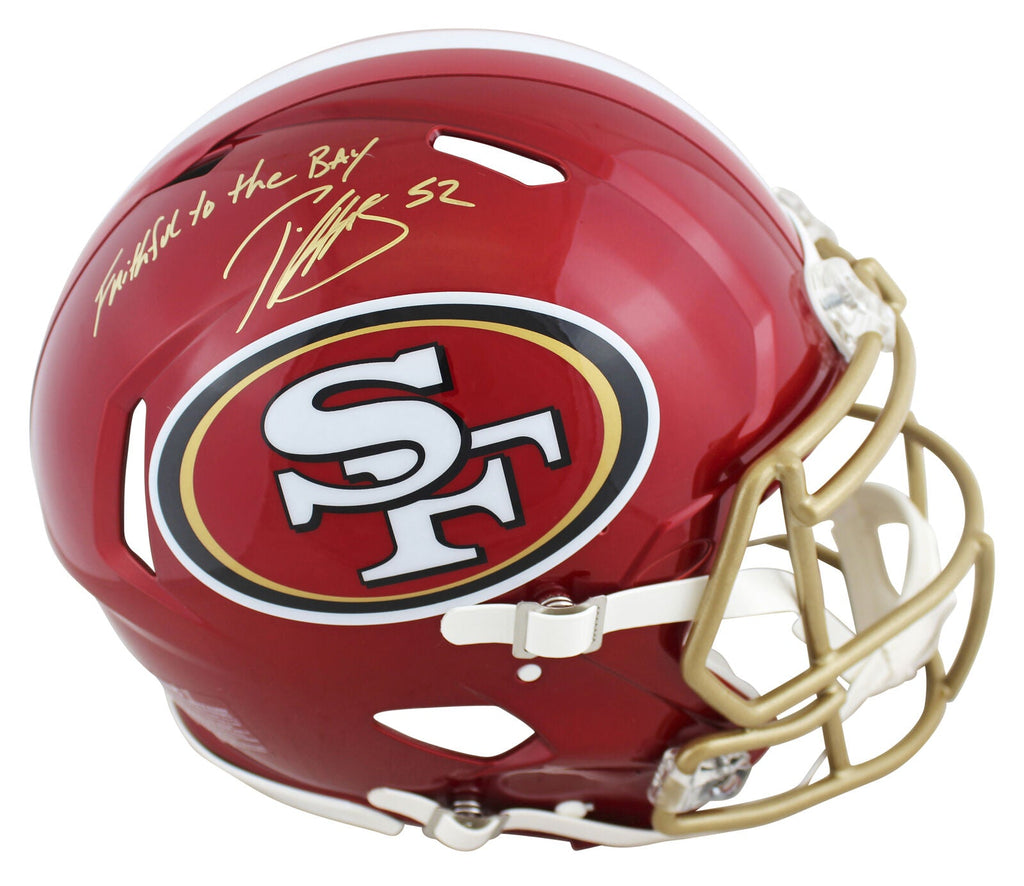 This Autographed Alternate Flash Riddell Authentic Full Size Speed Proline Helmet with the inscription of "Faithful To The Bay" has been Personally Signed by Patrick Willis of the San Francisco 49ers. This item is 100% Authentic to include a hologram by Beckett Authentication Services. This item will come with the new Beckett Authentication hologram that has a scannable QR code rather than the traditional COA. If you would like to have a COA, you are welcome to reach out to Beckett for a printed certification once you receive your item. This is a BAS Witnessed Protection Program item which means a Beckett Authentication Service representative was present when this item was being signed. We conducted an autograph signing with Patrick Willis where multiples of the same item were signed. While the photographs are representative of this item, the size, placement and strength of the signature may vary. Each item is hand signed, therefore, each autograph is unique. This item can be verified through BAS Witnessed.
