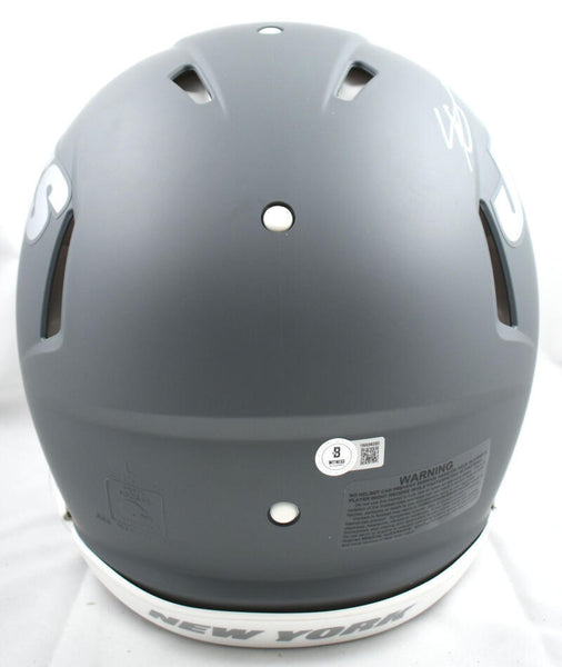 Ahmad Sauce Gardner Autographed New York Jets F/S Slate Speed Authentic Helmet- Beckett W Hologram *White This is a Ahmad Sauce Gardner of the New York Jets hand autographed Riddell Full Size Slate Speed Authentic Helmet. This item has a Beckett Witnessed Authentication, which comes with a numbered sticker hologram and a QR code for authentication. You can view this item on the Beckett Authentication website. It was signed either at a public autograph appearance or a private signing. This is a stock photo of the item. Although you may not receive this exact item, the item you receive is virtually identical, brand new, and in great shape.