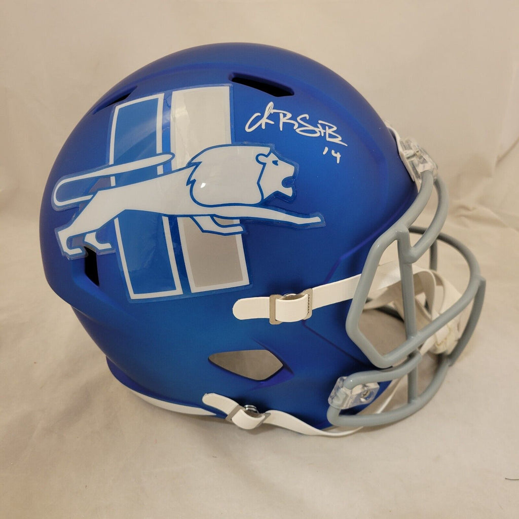 AMON RA ST BROWN AUTOGRAPHED / SIGNED DETROIT LIONS FULL SIZE ALTERNATE SPEED REPLICA HELMET WITH BECKETT QR COA