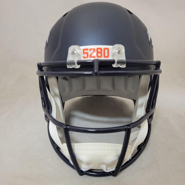 AUDRIC ESTIME AUTOGRAPHED DENVER BRONCOS FULL SIZE 2024 SPEED REPLICA HELMETBECKETT WITNESSED QR COA HOLOGRAMTHIS MEANS THE HELMET WAS SIGNED WITH A BECKETT REPRESENTATIVE PRESENT SO YOU CAN BE 100% CERTAIN ITS THE REAL THING.