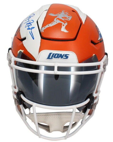This FSM ripped OSU and Detroit Lions Speed Flex helmet has been personally hand-signed by Barry Sanders. This helmet comes complete with the Schwartz Sports tamper proof hologram. MONEY BACK GUARANTEE! If for any reason you are not completely satisfied with the quality or authenticity of your purchase, we will gladly give you a full refund or exchange, whichever you prefer up to 30 days after purchase. Please feel free to e-mail us with any questions. Thank you. Authenticator Pre-Certified Authenticator: Schwartz Sports Authenticated History of item: Barry Sanders has signed this item in the presence of a representative from Schwartz Sports. Describe how you came to possess this item: Super Sports Center is a fully authorized dealer for Upper Deck Authenticated as well as Mounted Memories and Steiner Sports. Other information about you and / or the item: Super Sports Center strives to deliver the most authentic in sports memorabilia from trusted companies like Mounted Memories, Steiner Sports and Upper Deck Authenticated. If it exists, we can find it for you!