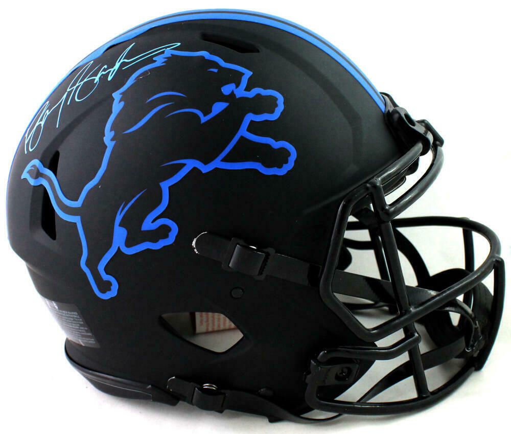 Barry Sanders Autographed Detroit Lions F/S Eclipse Speed Authentic Helmet - Beckett Auth *Blue This is a hand autograph of Barry Sanders of the Detroit Lions on a Riddell Football Full Size Eclipse Speed Authentic Helmet. This item has a Beckett Authentication that comes with a numbered sticker and a matching Beckett Certificate of Authenticity. You can view this item on the Beckett Authentication website, it shows when and where the item was signed. It was signed either at a public autograph appearance or a private signing. This is a stock photo of the item. Although you may not receive this exact item, the item you receive is virtually identical and brand new in great shape.