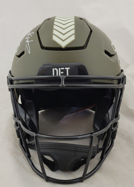 BARRY SANDERS AUTOGRAPHED DETROIT LIONS FULL SIZE SALUTE TO SERVICE (STS) SPEEDFLEX AUTHENTIC HELMETBECKETT QR HOLOGRAMTHIS MEANS THE HELMET WAS SIGNED WITH A BECKETT REPRESENTATIVE PRESENT SO YOU CAN BE 100% CERTAIN ITS THE REAL THING.