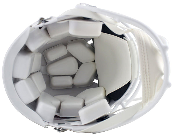 This Autographed Authentic Full Size Speed Proline Helmet with the inscription of "HOF 85, 2003 Yds in 1973" has been Personally Signed by O.J. Simpson of the Buffalo Bills. This item is 100% Authentic to include a Certificate of Authenticity (COA) / hologram by JSA Witness. This is a JSA Witnessed Protection Program item which means a JSA representative was present when this item was being signed. We conducted an autograph signing with O.J. Simpson where multiples of the same item were signed. While the photographs are representative of this item, the size, placement and strength of the signature may vary. Each item is hand signed, therefore, each autograph is unique. This item can be verified through JSA Witness.