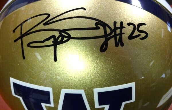 This is a Riddell UW full size Authentic helmet that has been hand signed by Bishop Sankey. It comes with a custom tamper-evident serial numbered hologram and Certificate of Authenticity from our company, Mill Creek Sports.