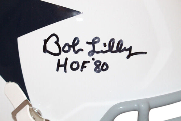 Bob Lilly Autographed Dallas Cowboys F/S '60-'63 speed Helmet /HOF BAS 39842 The number in the listing title is just an inventory sku for our records and is not the authentication number. The item pictured is a stock photo unless otherwise noted. This is a Dallas Cowboys full size speed throwback 1960-1963 replica helmet that was personally autographed by Bob Lilly with HOF inscription. Includes a certificate of authenticity from Beckett Authentication Services (BAS) and Denver Autographs.