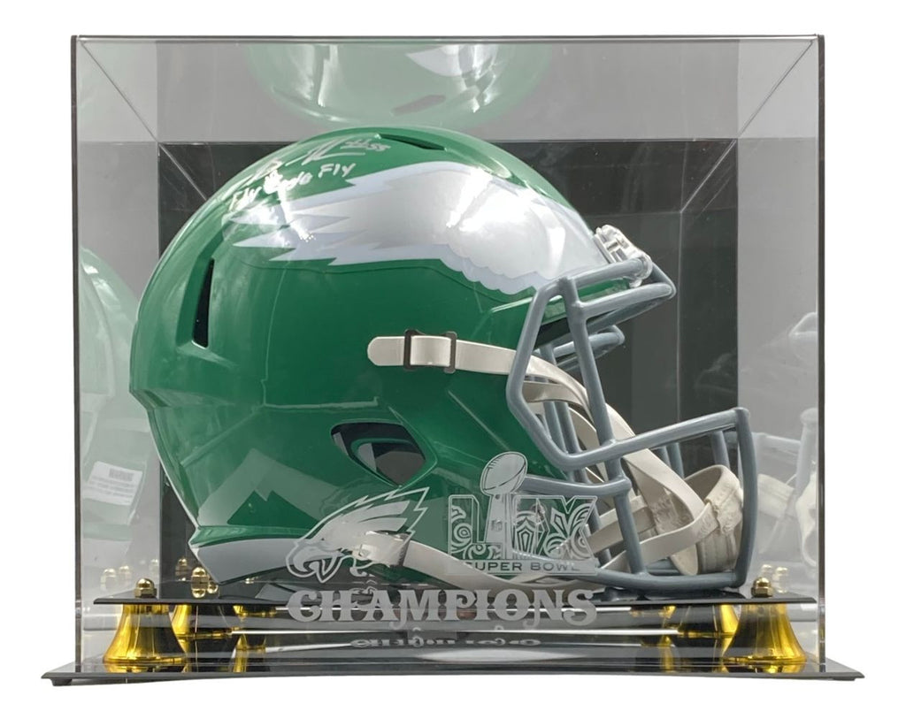 Featured is a Brandon Graham signed Philadelphia Eagles speed replica helmet, inscribed "Fly Eagles Fly". This helmet has been hand signed by Graham and comes with the JSA hologram and certificate of authenticity. Included with this helmet is a Super Bowl 59 deluxe acrylic display case. This helmet would make a great addition to any sports memorabilia collection!. SPECIFICATIONS Autographed By: Brandon Graham Team: Philadelphia Eagles Sport: Football Authentication: James Spence Authentication (JSA)