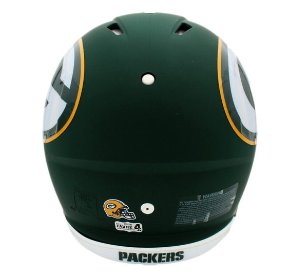 A Green Bay Packer Speed Authentic AMP NFL Helmet hand signed by Brett Favre. The item and signature are in excellent condition. Brett is one of the most iconic players in NFL history. A 20 year veteran of the NFL, Brett is a Super Bowl Champion, 11x Pro Bowler, 3x AP NFL Most Valuable Player, 4x NFL passing touchdowns leader, and 2x passing yards leader. His number, 4, has been retired by both the Green Bay Packers and the Southern Miss Golden Eagles. Brett was inducted into the Pro Football Hall of Fame in 2016. AUTHENTICATION: The item is accompanied by a Brett Favre Exclusive Certificate of Authenticity - Brett Favre Exclusive Serial Numbered and Databased Hologram - Picture of Brett from the signing