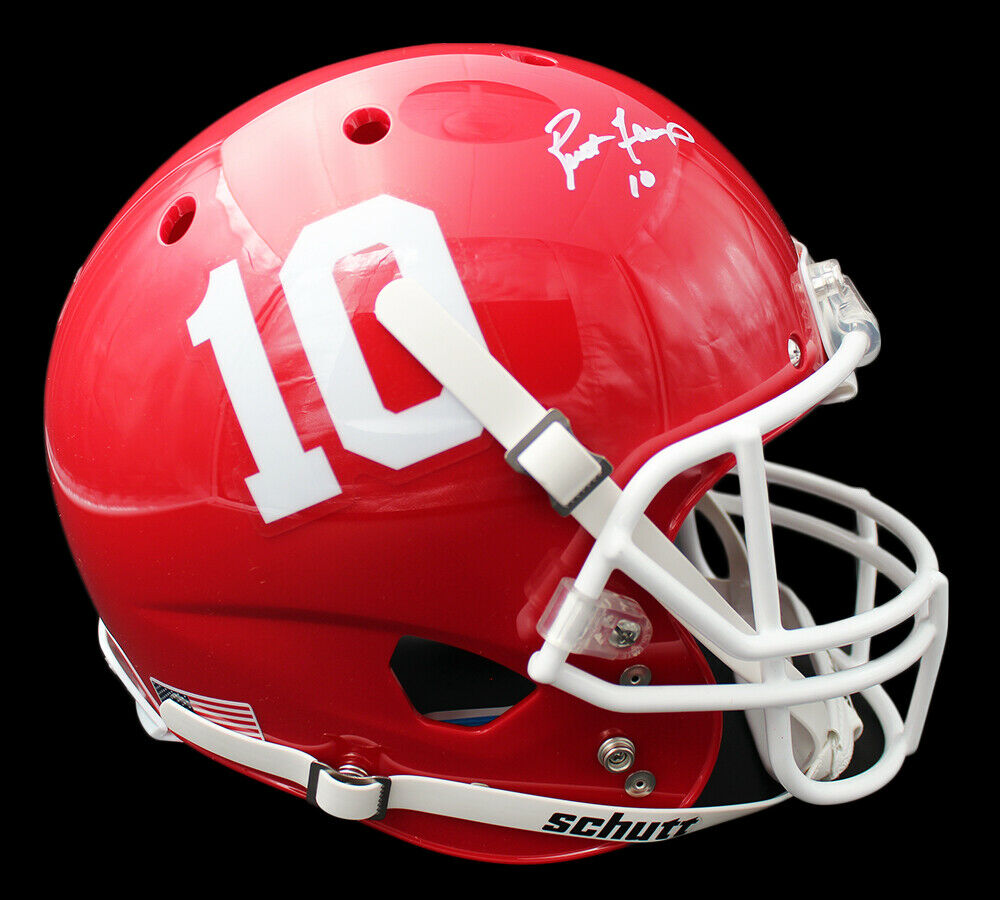 A Hancock High School Schutt Replica Helmet hand signed by Brett Favre. The item and signature are in excellent condition.Brett is one of the most iconic players in NFL history. A 20 year veteran of the NFL, Brett is a Super Bowl Champion, 11x Pro Bowler, 3x AP NFL Most Valuable Player, 4x NFL passing touchdowns leader, and 2x passing yards leader. His number, 4, has been retired by both the Green Bay Packers and the Southern Miss Golden Eagles. Brett was inducted into the Pro Football Hall of Fame in 2016. AUTHENTICATION: The item is accompanied by a Brett Favre Exclusive Certificate of Authenticity - Brett Favre Exclusive Serial Numbered and Databased Hologram - Picture of Brett from the signing