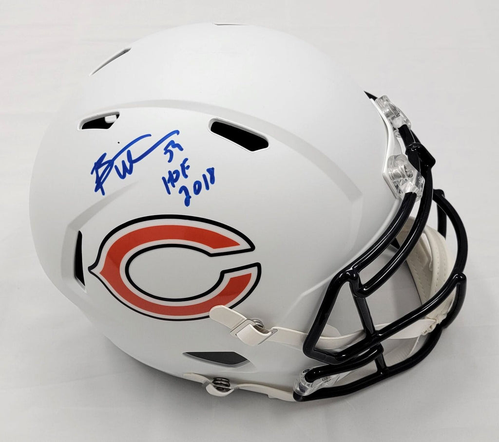 Brian Urlacher Signed Chicago Bears Replica Flat White Helmet W/ HOF 18 Beckett