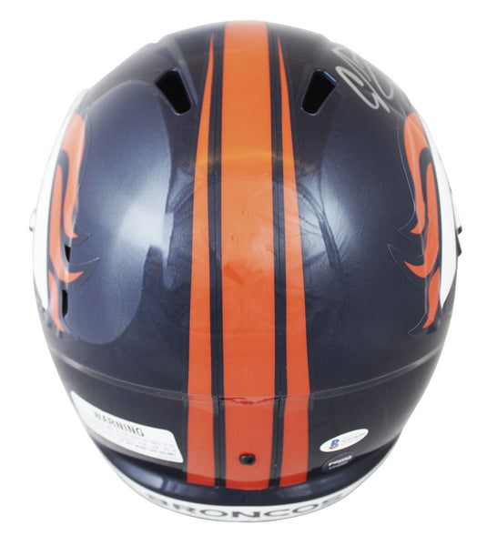 This Autographed Full Size Speed Rep Helmet has been Personally Signed by Champ Bailey of the Denver Broncos. This item is 100% Authentic to include a Certificate of Authenticity (COA) / hologram by Beckett Authentication Services. This is a BAS Witnessed Protection Program item which means a Beckett Authentication Service representative was present when this item was being signed. This is a stock item. We conducted an autograph signing with Champ Bailey and we have several of these available. The one you will receive will be of equal quality to the one pictured. This item can be verified through BAS Witnessed.