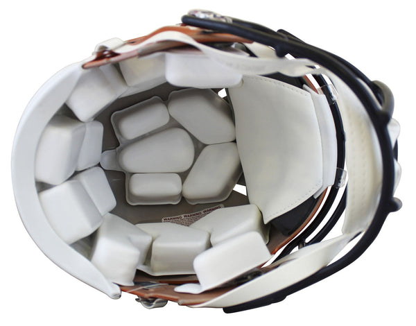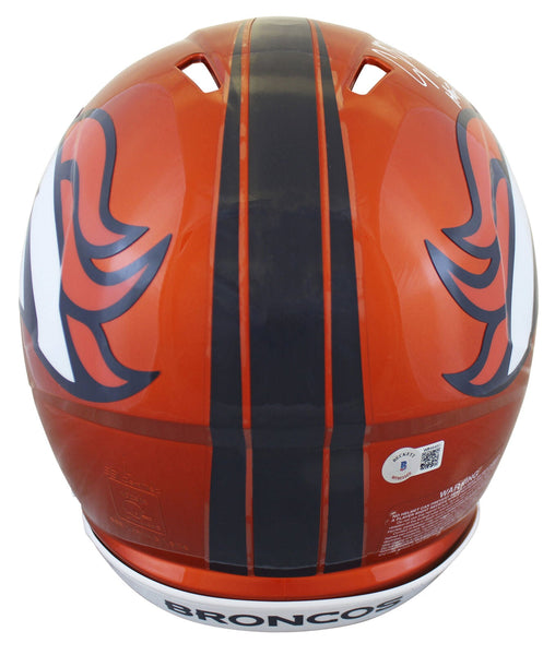 This Autographed Alternate Flash Riddell Authentic Full Size Speed Proline Helmet with the inscription of "HOF 19" has been Personally Signed by Champ Bailey of the Denver Broncos. This item is 100% Authentic to include a hologram by Beckett Authentication Services. This item will come with the new Beckett Authentication hologram that has a scannable QR code rather than the traditional COA. If you would like to have a COA, you are welcome to reach out to Beckett for a printed certification once you receive your item. This is a BAS Witnessed Protection Program item which means a Beckett Authentication Service representative was present when this item was being signed. We conducted an autograph signing with Champ Bailey where multiples of the same item were signed. While the photographs are representative of this item, the size, placement and strength of the signature may vary. Each item is hand signed, therefore, each autograph is unique. This item can be verified through BAS Witnessed.