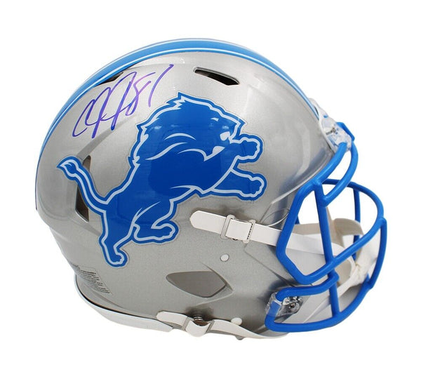 A Detroit Lions Speed Authentic 2024 NFL Helmet hand signed by Calvin Johnson. The item and signature are in excellent condition. Calvin is a former NFL Wide Receiver. He was selected as 2nd overall pick in the 2007 NFL Draft by the Detroit Lions. In college, he played for Georgia Tech Yellow Jackets. He is a 6x Pro Bowler, 3x First-team All-Pro, and 2x NFL Receiving Yards Leader. AUTHENTICATION: The item is accompanied by a Beckett Serial Numbered and Databased Hologram.