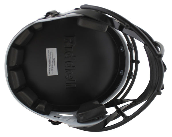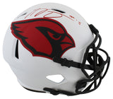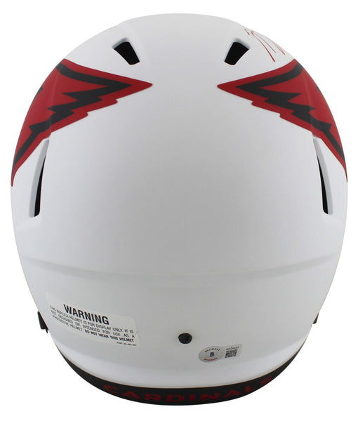 This Autographed Alternate Lunar Riddell Full Size Speed Rep Helmet has been Personally Signed by A.J. Green of the Arizona Cardinals. This item is 100% Authentic to include a hologram by Beckett Authentication Services. This item may come with the new Beckett Authentication hologram that has a scannable QR code rather than the traditional COA. If you would like to have a COA, you are welcome to reach out to Beckett for a printed certification once you receive your item. This is a BAS Witnessed Protection Program item which means a Beckett Authentication Service representative was present when this item was being signed. We conducted an autograph signing with A.J. Green where multiples of the same item were signed. While the photographs are representative of this item, the size, placement and strength of the signature may vary. Each item is hand signed, therefore, each autograph is unique. This item can be verified through BAS Witnessed.