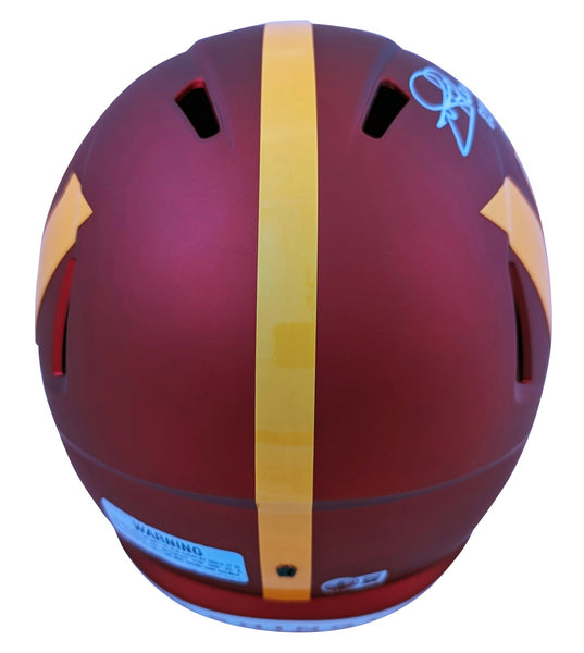 This Autographed Riddell Authentic Full Size Speed Rep Helmet with the inscription of "83 MVP" has been Personally Signed by Joe Theismann of the Washington Commanders. This item is 100% Authentic to include a hologram by Beckett Authentication Services. This item will come with an affixed Beckett Authentication Services (BAS) authentication sticker, which includes a scannable QR code to verify authenticity. Please note that Beckett no longer provides serial-numbered COA cards, and the attached BAS sticker will serve as the complete authentication for this item. This is a BAS Witnessed Protection Program item which means a Beckett Authentication Service representative was present when this item was being signed. We conducted an autograph signing with Joe Theismann where multiples of the same item were signed. While the photographs are representative of this item, the size, placement and strength of the signature may vary. Each item is hand signed, therefore, each autograph is unique. This item can be verified through BAS Witnessed.