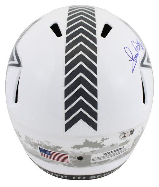 This Autographed Alternate 2024 Salute To Service III Riddell Full Size Speed Rep Helmet W/ Uv Mirrored Back Acrylic Display Case has been Personally Signed by Tony Dorsett of the Dallas Cowboys. This item is 100% Authentic to include a hologram by Beckett Authentication Services. This item will come with an affixed Beckett Authentication Services (BAS) authentication sticker, which includes a scannable QR code to verify authenticity. Please note that Beckett no longer provides serial-numbered COA cards, and the attached BAS sticker will serve as the complete authentication for this item. This is a BAS Witnessed Protection Program item which means a Beckett Authentication Service representative was present when this item was being signed. We conducted an autograph signing with Tony Dorsett where multiples of the same item were signed. While the photographs are representative of this item, the size, placement and strength of the signature may vary. Each item is hand signed, therefore, each autograph is unique. This item can be verified through BAS Witnessed.
