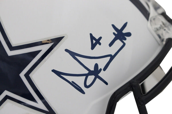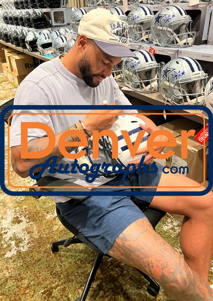 The number in the listing title is just an inventory sku for our records and is not the authentication number. The item pictured is a stock photo unless otherwise noted. This is a Dallas Cowboys Full Size Replica Flat White Helmet that was personally autographed by Dak Prescott. Includes a certificate of authenticity from Beckett Authentication Services (BAS) and Denver Autographs.