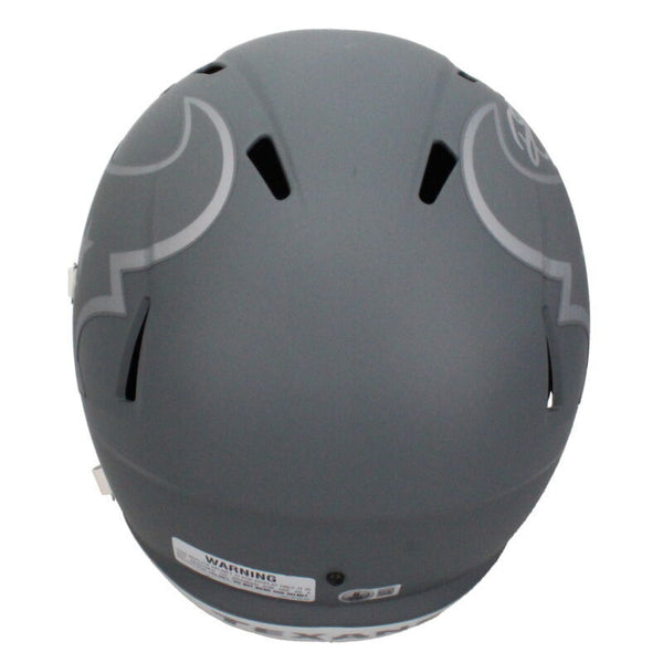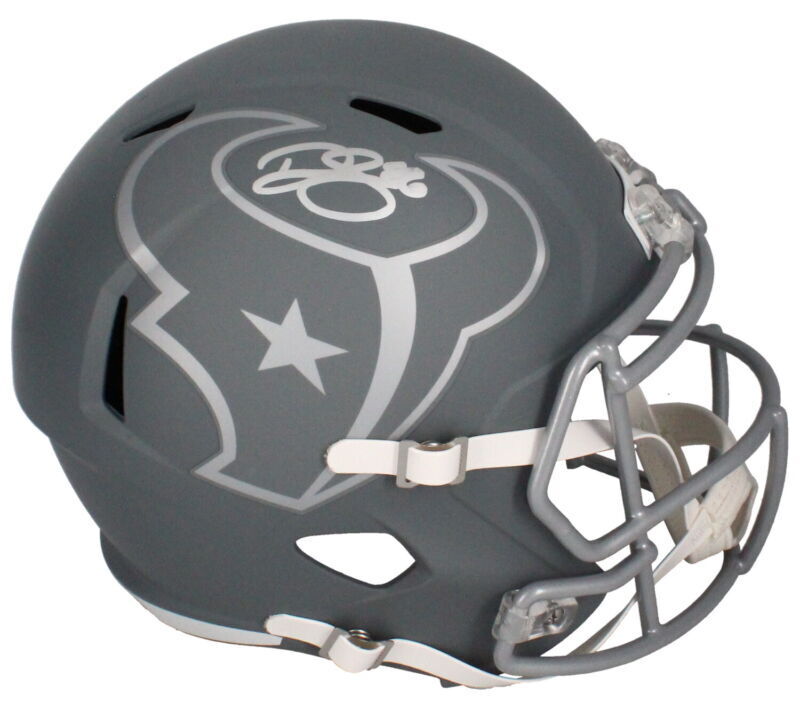 This Houston Texans 'Slate' full size replica Riddell Speed helmet has been personally hand-signed by Dalton Schultz. It comes with an individually numbered, tamper-evident hologram from Beckett Authentic. To ensure authenticity, the hologram can be reviewed online. This process helps to ensure that the product purchased is authentic and eliminates any possibility of duplication or fraud.