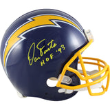 The number in the listing title is just an inventory sku for our records and is not the authentication number. This is a stock photo, unless otherwise noted. This is a San Diego Chargers Throwback 1974-1987 VSR4 Full Size Authentic Helmet that was personally autographed by Dan Fouts, includes "HOF" inscription. Includes a certificate of authenticity from Beckett Authentication Services (BAS) and Denver Autographs.