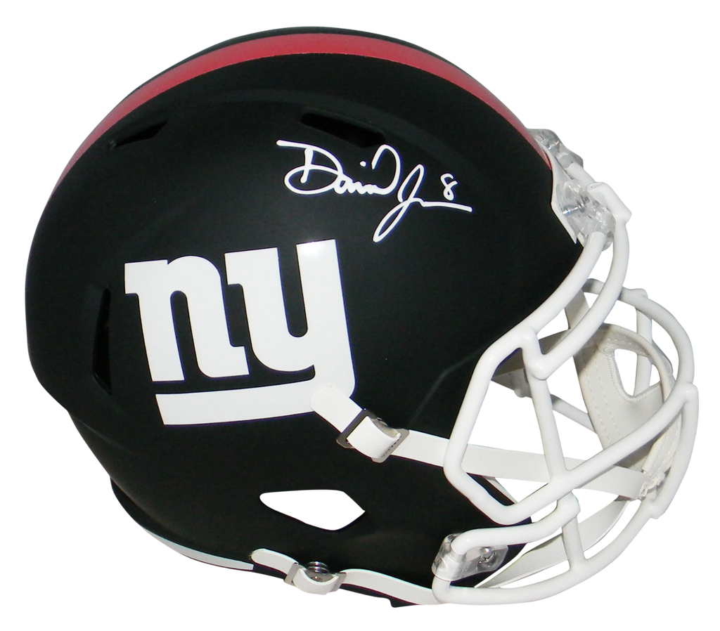 Daniel Jones, former quarterback for the New York Giants, has hand signed this Giants Riddell Speed Flat Black full-size replica helmet at a private signing. This item comes with a certificate of authenticity (COA) from Beckett Authentication Services and was signed in the presence of one of their representatives. You will receive a serial-numbered COA along with a matching serial-numbered sticker on the helmet. The authenticity can be verified online by entering the serial number.Item pictured may not be the exact item you will receive. It will be similar quality, and we guarantee your satisfaction.