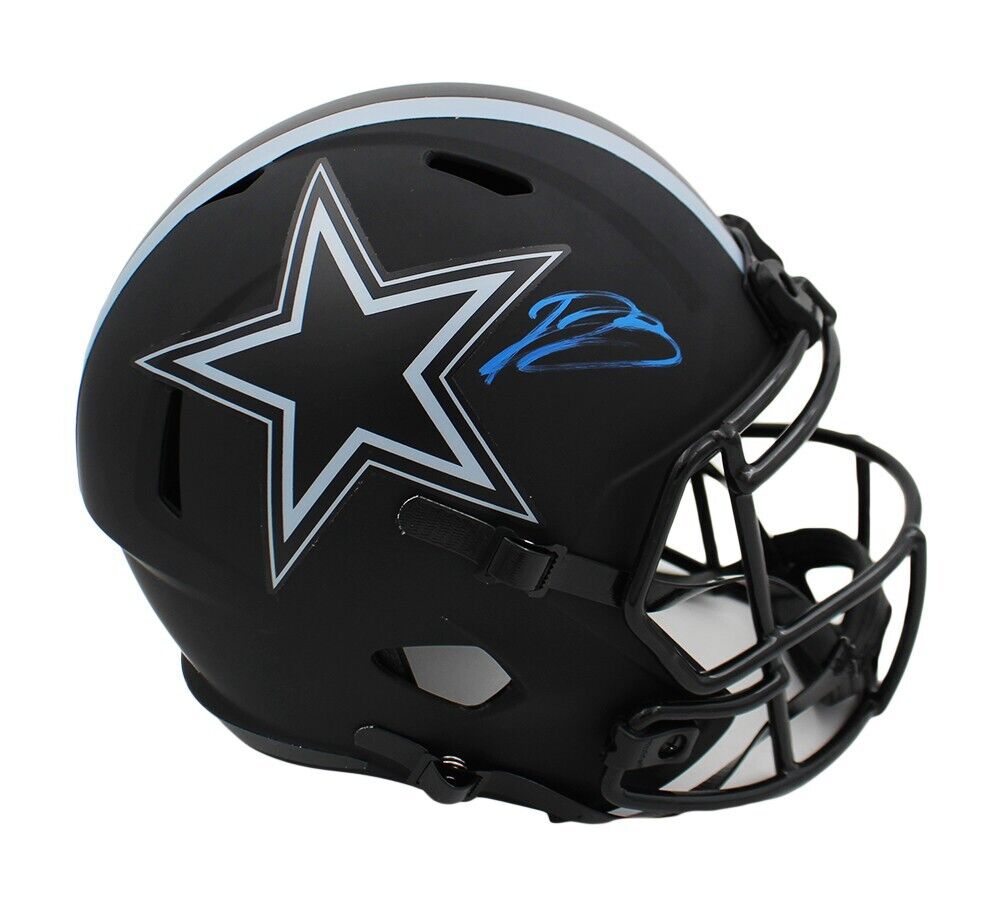 A Dallas Cowboys Speed Replica Eclipse NFL Helmet hand signed by DaRon Bland. The item and signature are in excellent condition. DaRon is a football cornerback for the Dallas Cowboys, drafted into the NFL in 2022. He was invited to the Pro Bowl and is was NFL Interception Leader in 2023. AUTHENTICATION: The item is tagged with a Beckett Serial Numbered and Databased Hologram.