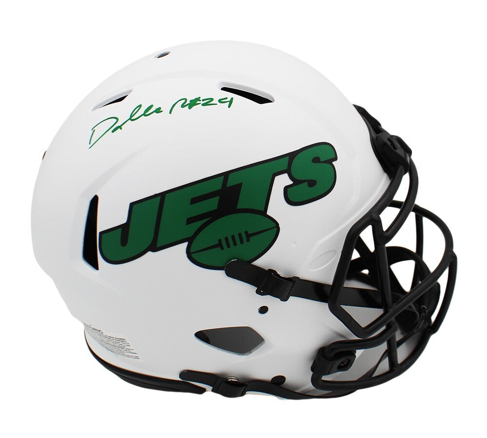 A New York Jets Speed Authentic Lunar NFL Helmet hand signed by Darrelle Revis. The item and signature are in excellent condition. Darrelle is a former football cornerback for the New York Jets. He is a Super Bowl Champion, 7x Pro Bowler, and received the New York Jets Ring of Honor. AUTHENTICATION: Your item has been tagged with a SmarTag powered by Prova technology, which gives you digital access to your items authentication records, including a proof picture from the signing.
