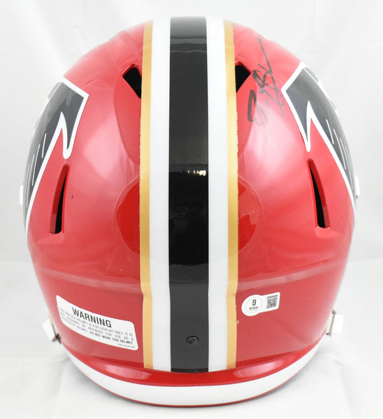 This is a Deion Sanders of the Atlanta Falcons autographed Riddell football full size 66-69 Speed Replica helmet. This item has a Beckett Witnessed Authentication, which comes with a numbered hologram and a QR code for verification. You can view this item on the Beckett Authentication website, and it shows when and where the item was signed. It was signed either at a public autograph appearance or a private signing. This is a stock photo of the item. Although you may not receive this exact item, the item you receive is virtually identical, brand new, and in great shape. *Autograph location may vary* This is a Deion Sanders of the Atlanta Falcons autographed Riddell football full size 66-69 Speed Replica helmet. This item has a Beckett Witnessed Authentication, which comes with a numbered hologram and a QR code for verification. You can view this item on the Beckett Authentication website, and it shows when and where the item was signed. It was signed either at a public autograph appearance or a private signing. This is a stock photo of the item. Although you may not receive this exact item, the item you receive is virtually identical, brand new, and in great shape. *Autograph location may vary*