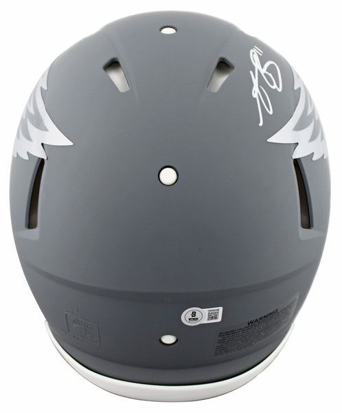 This Autographed Alternate Slate Riddell Full Size Speed Proline Helmet W/ Uv Mirrored Back Acrylic Display Case has been Personally Signed by A.J. Brown of the Philadelphia Eagles. This item is 100% Authentic to include a hologram by Beckett Authentication Services. This item will come with an affixed Beckett Authentication Services (BAS) authentication sticker, which includes a scannable QR code to verify authenticity. Please note that Beckett no longer provides serial-numbered COA cards, and the attached BAS sticker will serve as the complete authentication for this item. This is a BAS Witnessed Protection Program item which means a Beckett Authentication Service representative was present when this item was being signed. We conducted an autograph signing with A.J. Brown where multiples of the same item were signed. While the photographs are representative of this item, the size, placement and strength of the signature may vary. Each item is hand signed, therefore, each autograph is unique. This item can be verified through BAS Witnessed.