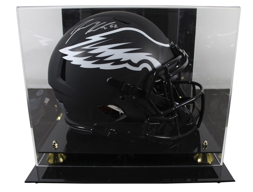 This Autographed Alternate Eclipse Riddell Full Size Speed Proline Helmet W/ Uv Mirrored Back Acrylic Display Case has been Personally Signed by Jason Kelce of the Philadelphia Eagles. This item is 100% Authentic and comes with a PSA/DNA Certification numbered Hologram. Please note that PSA/DNA no longer provides serial-numbered COA cards, and the attached PSA/DNA sticker will serve as the complete authentication for this item. We conducted an autograph signing with Jason Kelce where multiples of the same item were signed. While the photographs are representative of this item, the size, placement and strength of the signature may vary. Each item is hand signed, therefore, each autograph is unique. This item can be verified through PSA/DNA Holo.