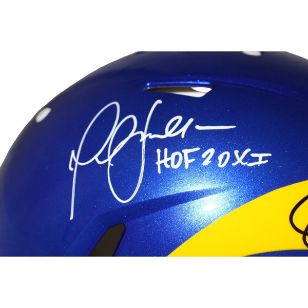 Eric Dickerson Marshall Faulk Signed LA Rams Authentic Helmet HOF BAS 42337 The number in the listing title is just an inventory sku for our records and is not the authentication number. The item pictured is a stock photo unless otherwise noted. This is a Los Angeles Rams Full Size Authentic Helmet that was personally autographed by Eric Dickerson and Marshall Faulk with "HOF" inscription. Includes a certificate of authenticity from Beckett Authentication Services (BAS) and Denver Autographs.