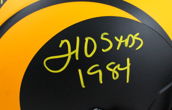 Eric Dickerson Autographed LA Rams F/S Eclipse Speed Helmet w/2 Insc - Beckett W Auth *Yellow This is a hand autograph of Eric Dickerson of the Los Angeles Rams on a Riddell Football Full Size Eclipse Speed Replica Helmet. This item is inscribed with HOF and 2105 Yards 1984. This item has a Beckett Witnessed Authentication, which comes with a numbered and a matching Beckett Certificate of Authenticity. You can view this item on the Beckett Authentication website and it shows when and where the item was signed. It was signed either at a public autograph appearance or a private signing. This is a stock photo of the item. Although you may not receive this exact item, the item you receive is virtually identical and brand new in great shape.