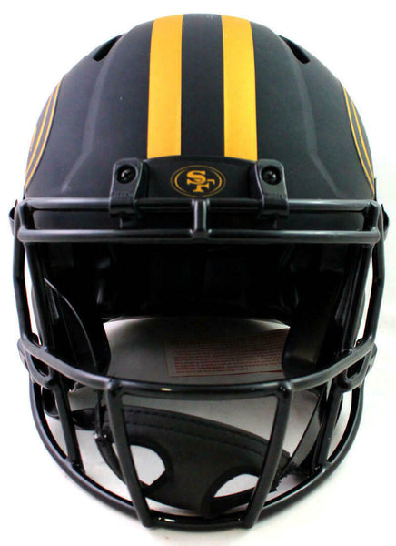 Frank Gore Autographed San Francisco 49ers F/S Eclipse Speed Helmet- Beckett W *Gold This is a hand autographed Frank Gore of the San Francisco 49ers Riddell Football Full Size Eclipse Speed authentic helmet. This item has a Beckett Authentication, which comes with a numbered and a matching Certificate of Authenticity. You can view this item on the Beckett website. It was signed either at a public autograph appearance or a private signing. This is a stock photo of the item. Although you may not receive this exact item, the item you receive is virtually identical, brand new, and in great shape.