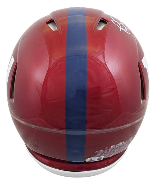 This Autographed Alternate Flash Riddell Full Size Speed Proline Helmet W/ Uv Mirrored Back Acrylic Display Case with the inscription of "SB XXI MVP" has been Personally Signed by Phil Simms of the New York Giants. This item is 100% Authentic to include a hologram by Beckett Authentication Services. This item will come with an affixed Beckett Authentication Services (BAS) authentication sticker, which includes a scannable QR code to verify authenticity. Please note that Beckett no longer provides serial-numbered COA cards, and the attached BAS sticker will serve as the complete authentication for this item. This is a BAS Witnessed Protection Program item which means a Beckett Authentication Service representative was present when this item was being signed. We conducted an autograph signing with Phil Simms where multiples of the same item were signed. While the photographs are representative of this item, the size, placement and strength of the signature may vary. Each item is hand signed, therefore, each autograph is unique. This item can be verified through BAS Witnessed.