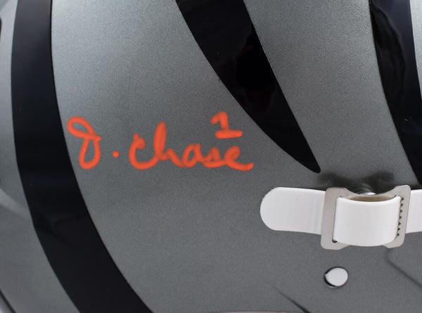Ja'Marr Chase Autographed Cincinnati Bengals Flash F/S Speed Authentic Helmet - PSA*Orange This is a Ja'Marr Chase of the Cincinnati Bengals hand autographed Riddell Football Flash Speed Authentic Helmet. This item has a PSA In The Presence Witnessed Authentication, which comes with a numbered hologram and a matching PSA certificate of authenticity. You can view this item on the Beckett Authentication website. It was signed either at a public autograph appearance or a private signing. This is a stock photo of the item. Although you may not receive this exact item, the item you receive is virtually identical, brand new, and in great shape. We appreciate your interest in our items and strive to make all transactions satisfying and professional.
