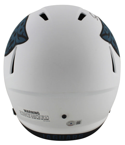 This Autographed Alternate Lunar Riddell Full Size Speed Rep Helmet has been Personally Signed by Calvin Ridley of the Jacksonville Jaguars. This item is 100% Authentic to include a hologram by Beckett Authentication Services. This item may come with the new Beckett Authentication hologram that has a scannable QR code rather than the traditional COA. If you would like to have a COA, you are welcome to reach out to Beckett for a printed certification once you receive your item. This is a BAS Witnessed Protection Program item which means a Beckett Authentication Service representative was present when this item was being signed. We conducted an autograph signing with Calvin Ridley where multiples of the same item were signed. While the photographs are representative of this item, the size, placement and strength of the signature may vary. Each item is hand signed, therefore, each autograph is unique. This item can be verified through BAS Witnessed.