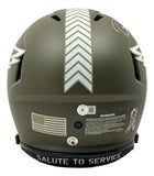 Featured is a Jalen Hurts signed Philadelphia Eagles full size Salute To Service authentic speed helmet. This helmet has been hand signed by Hurts and comes with the Beckett witnessed hologram and certificate of authenticity along with the Hurts exclusive hologram. Included with this case is a Super Bowl 59 LIX deluxe acrylic display case. This item would make a great addition to any sports memorabilia collection!.. SPECIFICATIONS Autographed By: Jalen Hurts Team: Philadelphia Eagles Sport: Football Authentication: Beckett Grading Services