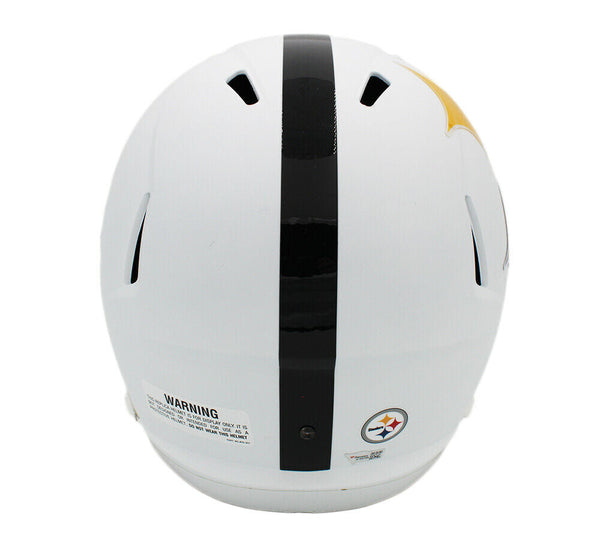 A Pittsburgh Steelers Speed Replica AMP NFL Helmet hand signed by James Connor. The item and signature are in excellent condition. James played college football at Pittsburgh, and was drafted by the Steelers in the third round of the 2017 NFL Draft. James is a 1x Pro Bowler (2018), AFCA 1st team All-American (2014), ACC Player of the Year (2014), ACC Offensive Player of the Year (2014), and First-team All-ACC (2014, 2016). - AUTHENTICATION: The item is accompanied by a Fanatics Authentic Certificate of Authenticity - Fanatics Authentic Serial Numbered and Databased Hologram -