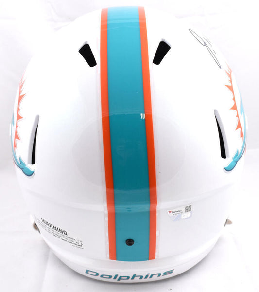 Jaylen Waddle Autographed Miami Dolphins F/S Speed Helmet- Fanatics *Black This is a hand autograph of Jaylen Waddle of the Miami Dolphins on a Riddell Football Full Size Speed Replica Helmet. This item has a Fanatics Authentication, which comes with a numbered sticker hologram and a QR code for verification. You can view this item on the Fanatics Authentication website and it shows when and where the item was signed. It was signed either at a public autograph appearance or a private signing. This is a stock photo of the item. Although you may not receive this exact item, the item you receive is virtually identical and brand new in great shape.