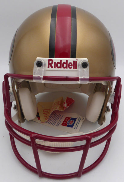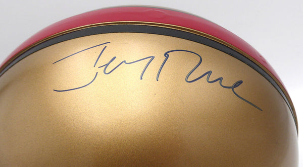 This is a Full Size Authentic Helmet that has been hand signed by Jerry Rice. This item has been certified authentic by Beckett Authentication (BAS) and comes with their tamper-proof QR Code sticker that can be verified on the Beckett-authentication.com.